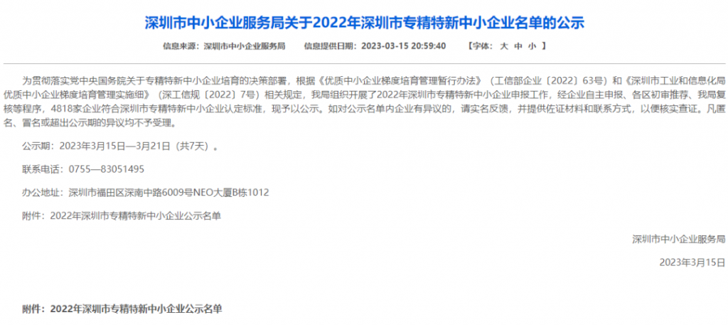 根據(jù)《優(yōu)質(zhì)中小企業(yè)梯度培育管理暫行辦法》(工信部企業(yè)〔2022]63號(hào))和《深圳市工業(yè)和信息化局優(yōu)質(zhì)中小企業(yè)梯度培育管理實(shí)施細(xì)則》,深圳市中小企業(yè)服務(wù)局公示了2022年深圳市「專精特新」中小企業(yè)名單,深圳市炫之風(fēng)文化創(chuàng)意有限公司位列其中!